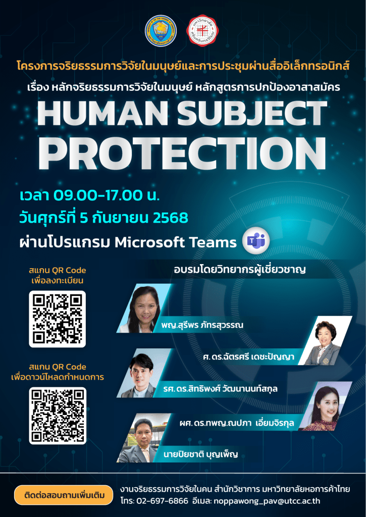 ขอเชิญผู้สนใจเข้าร่วมอบรมออนไลน์ โครงการจริยธรรมการวิจัยในมนุษย์และการประชุมผ่านสื่ออิเล็กทรอนิกส์