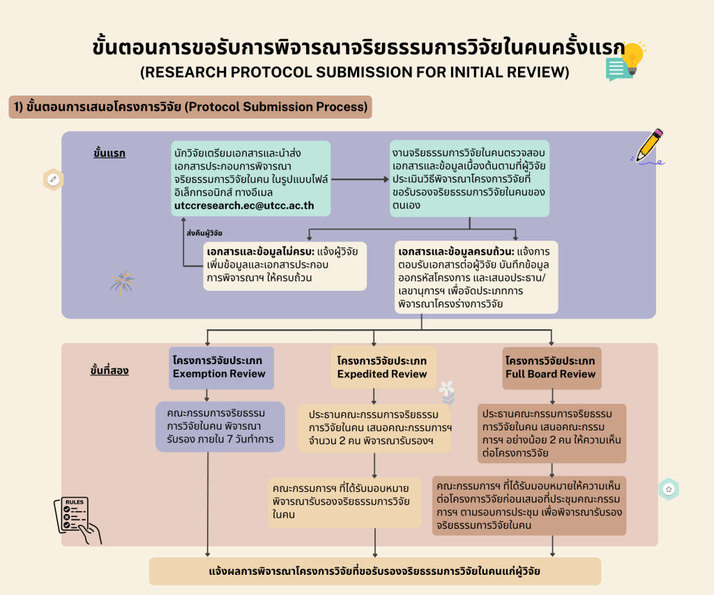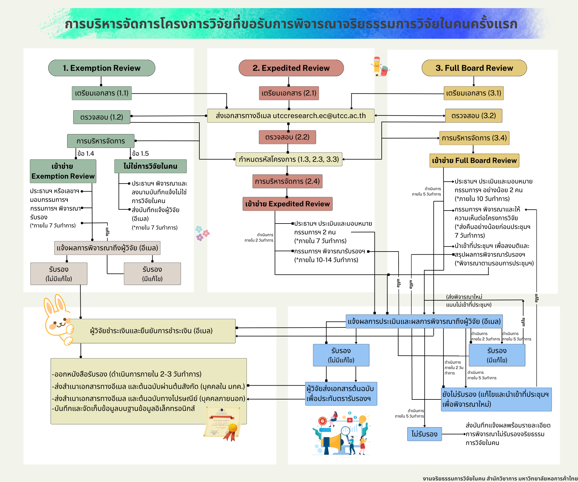 - สรุปการบริหารจัดการโครงการวิจัยที่ขอรับการพิจารณาจริยธรรมการวิจัยในคนครั้งแรก [PDF][PNG]