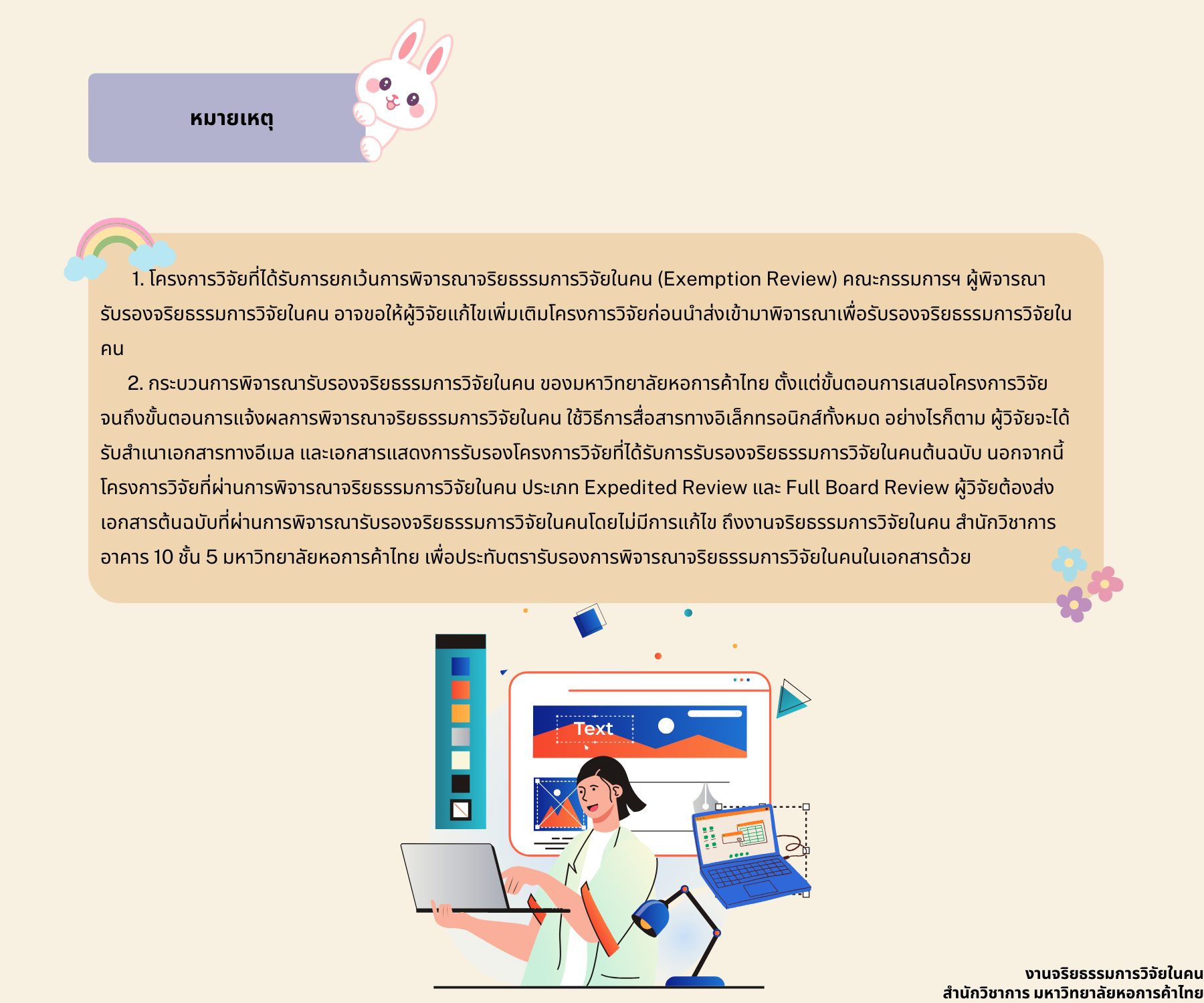 - หลักเกณฑ์การจัดประเภทโครงการวิจัย เพื่อขอการรับรองจริยธรรมการวิจัยในคน